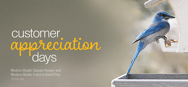 We love our customers as much as we love the birds and nature. From the photos you share to the stories you tell, you remind us every day why we do what we do. As a BIG thank you, we’re celebrating Customer Appreciation Days. It's a chance to show you some love. So stop by, stock up and save. Your support of our small business means the world to us (and the birds).